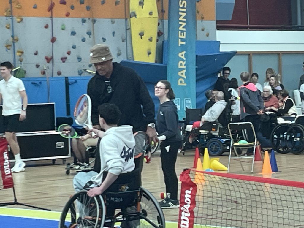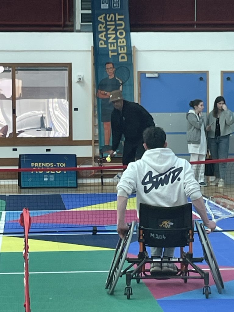 Moment marquant de l’événement : la présence de Yannick Noah, coordonnateur du para tennis à la FFT, venu partager quelques balles avec les patients et transmettre sa passion sportive.