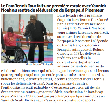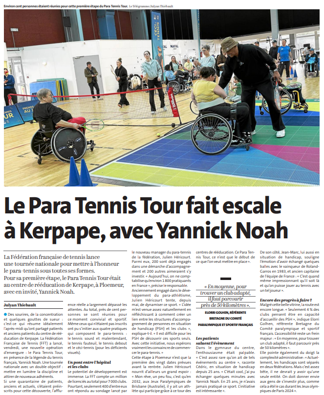 Le vendredi 27 février, le Centre de Kerpape a eu le plaisir d’accueillir le Para Tennis Tour, une initiative portée par la Fédération Française de Tennis (FFT) pour faire découvrir, développer et promouvoir la pratique du para tennis.